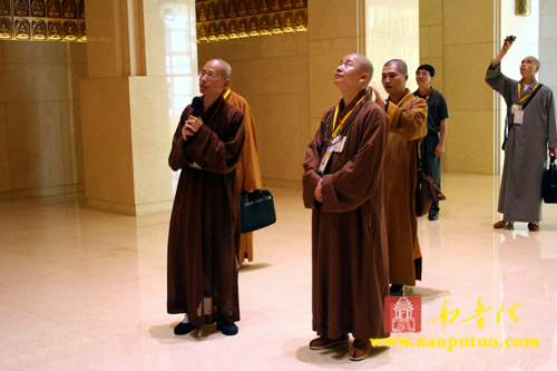 辞别长老之后,访问团于下午1时30分来到位于中道学苑对面素有‘佛国之称’的中台禅寺,中台禅寺常务副住持见尊法师亲自接待参访团,并带领大家参观了寺院全貌。中台禅寺的主体建筑有150多米,其中各各建筑一一显示了佛法的教理。在交流参观中,中台禅寺的规划、管理和见尊法师的渊博学识令参访团成员
