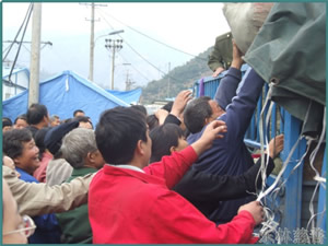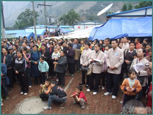 10月 23日凌晨4点,东林慈善功德会的工作人员到达四川省绵阳市,在王秀兰居士等志愿者的配合下,深入灾情最严重的北川县陈家坝乡红岩村和擂鼓镇进行了详细的实地走访。并登记了各村各户的人员名单及生活情况。通过走访,我们获知:大多数灾民依然住在帐篷之中。对于未来的生活,大部分人都没有任何能力去考虑,尤其是老人和儿童没有生活的来源。过冬的棉被和垫子都只能期望政府和社会各方来解决安排。而国家规定震灾后三个月内给每人补贴一天十元和一斤米也已经停止了,有部分村民能在附近打零工来糊口,但相当部分灾民的生活依然没有着落。关于建永久性住房的问题,大部分灾民目前并没有能力来建房,另外,由于地震后,大量倾泄泥石流的情况还时有发生,所以目前也无法建永久性住房。整个灾民安置点在几天前才在路上通了电,因两次尝试在板房通电而发生火灾的情况,所以目前各家各户都没有照明,他们很需要手电筒。目前他们的生活依然十分艰苦和缺乏,希望继续得到社会的关怀。
