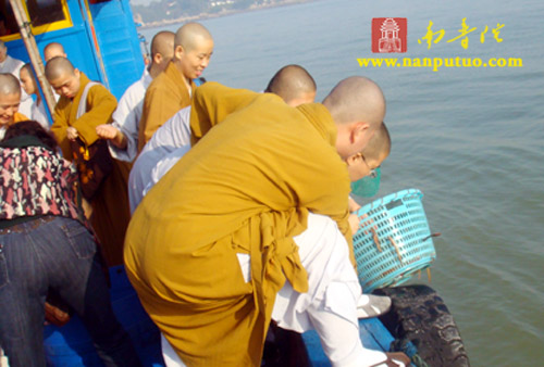 闽南佛学院女众部慈善小组昨日组织放生活动