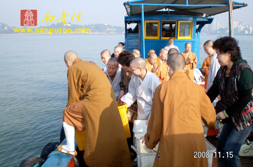 11月16日上午8时,紫竹林女众部慈善小组组织的一学期一次的放生活动在厦门第一码头举行,闽南佛学院女众部班主任自信法师、万朗法师带领三十几名学僧随喜参加。