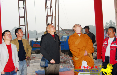 普照禅寺建设工程始建于2007年4月份,目前已经完成了土地审批,建设规划,以及大雄宝殿的建设等项目。在建设工地,正慈大和尚认真听取了工程项目负责人张嗣礼居士和施工单位负责人的汇报,对工程施工过程中遇到的资金短缺问题和工程安全问题进行了调研。