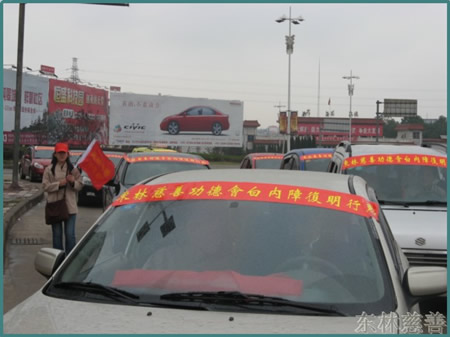 十一月二日下午,虽然连日的阴雨绵绵,东林慈善功德会却异常热闹。从中午开始,东林慈善功德会的数十位志愿者们就在此做好迎接老人们到来的准备工作;特别是九江学院生命科学学院义务家教服务社的十位学生也赶来参加了志愿工作,为老人们献出自己的一份爱心。为了此次活动,东林慈善功德会和热心的志愿者们从各处调来了轿车及面包车共十四辆组成爱心车队,他们陆续开往功德会所在地,在门口整齐地排成了长队。