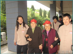 一路上志愿者悉心陪伴照顾着老人们