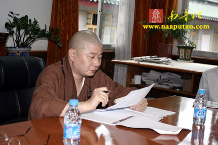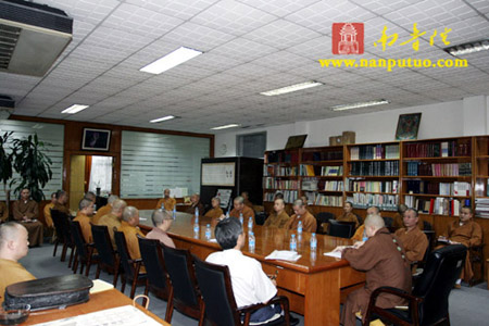 2008年11月3日下午,南普陀寺在闽南佛学院教务处召开全体执事会议。这是则悟法师续任第十三任方丈后召开的第一次全体执事会议,南普陀寺各班首执事及厦门市民宗局二处黄镇辉处长出席了本次会议。
