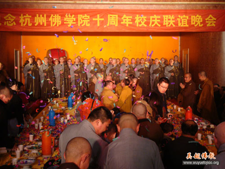 2008年12月19日至21日,浙江省杭州佛学院校庆十周年暨第六届吴越佛教唯识研讨会隆重召开。国家宗教局政策法规司吕晋光副司长,杭州市民宗委相关领导,江苏省佛教协会会长、苏州灵岩山寺方丈明学长老等诸山长老以及部分专家学者出席了20日上午举行的开幕式。活动期间还举办了联谊晚会,杭州佛学院院长光泉法师和前来参加十周年校庆的杭州佛学院师生们欢聚一堂。