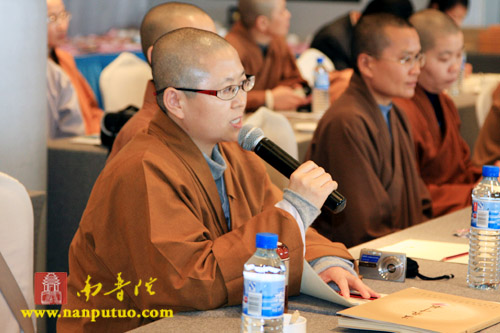 第六届道圣同学、法缘同学担任座谈会主持人,本次座谈的议题是《21世纪佛教发展的展望——第六届同学在21世纪佛教发展中的职责和义务》。座谈会上,各位同学抚今忆往、互励明天,言谈中盛满对母校给予法乳深恩的感谢,对妙老慈悲精神的无限感佩及谆谆教诲的深深追思。另外,他们对母校也提出诸多建言和愿望,希望闽院明天更美好,希望续佛慧命、使法运绵延。通过座谈,大家交流心得、增进法谊,并齐心发愿弘扬佛法、利益有情。