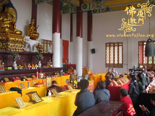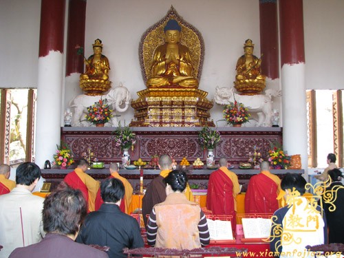 昨日是厦门碧山岩寺“慈悲梁皇宝忏”法会的第二天,冬日的阳光普照大地,大殿内礼佛的僧众和善信居士充满了法喜,在主忏法师的带领下,如法如律的随声念诵忏文,虔诚礼拜,真诚的发露罪愆,求哀忏悔。