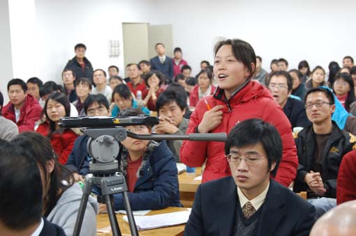 讲座主体部分结束后,现场听众热烈地向法师提问,法师都给予了简洁明了的回答。大家多次报以热烈的掌声。吴言生教授对讲座做了精彩的点评,赠予法师新著《赵州录校注集评》,并题词“与圣贤为友,悟诸法皆空”。讲座在热烈的气氛中圆满结束。