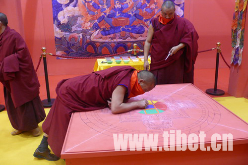西藏文化展掠影:现场制作彩粉砂制坛城引人瞩目