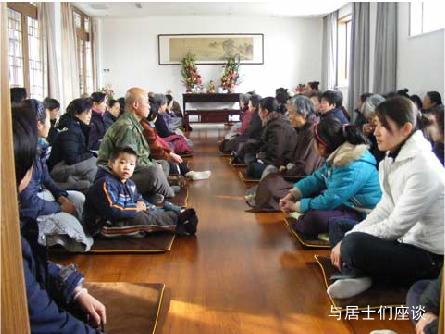 菩提爱心协会挂牌办公后,已经开始带领居士们共修了,除了每天下午(2:30-3:30)念佛一枝香,到了双休日另外安排了不同阶段的佛学课程,目前有吉祥班与菩提班,从学佛行仪、三皈五戒、在家菩萨戒等。