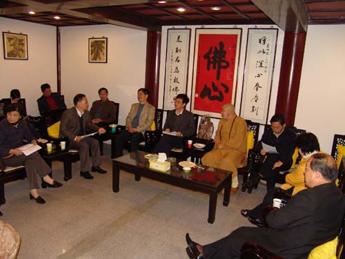 传义大和尚在一味斋与陈家宝主任一行亲切交谈