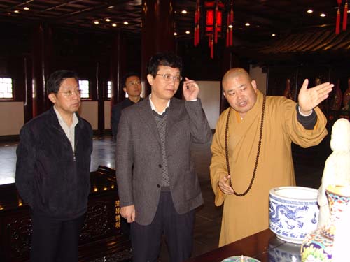 传义大和尚陪同陈家宝主任一行参观万佛楼