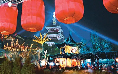 20:15 抵达枫桥景区,参观大钟大碑园,观赏枫桥大街的民俗迎宾活动,参加江枫洲盛世和音民俗灯会活动,观看梵呗音乐大型歌舞演出,观赏大型灯彩、传统民间工艺表演、品尝传统小吃。