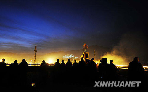 当日是藏历十月二十五日,是藏传佛教格鲁派创始人宗喀巴大师圆寂成佛的日子。西藏信教群众在寺院和俗家屋顶点亮酥油灯,欢度燃灯节。