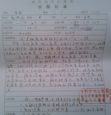 之后的日子,就是震惊世界的汶川大地震,绵阳是重灾区。我除了日常生活,也尽力帮助救灾,有时走过协和医院时会想到:不知他们怎么样了?但是,忙碌的事务让我无法停下脚步,只在记忆中有一份牵挂。