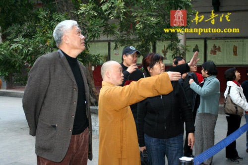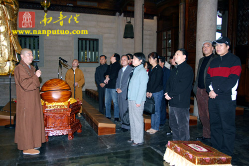 领导们主要参观了我寺的主体建筑——大雄宝殿,方丈则悟大和尚亲自为他们进行详细解说。