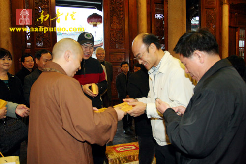 12月23日下午5时许,厦门思明区政协主席江韵兰、厦门海沧区政协主席许成福、厦门市政协提案委主任张仁苇、厦门市民宗局局长曾文瑛等一行到南普陀寺参观,我寺方丈则悟大和尚率知客源提法师、衣钵宏真法师给予热情接待。