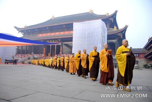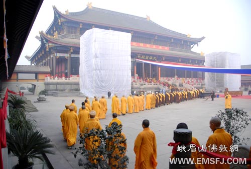 2008年12月14日,峨眉山大佛禅院将举行四川省佛教协会成立50周年纪念活动和大佛禅院落成庆典暨开光法会。为令坛场清净庄严,法会顺利圆满,12月11日,大佛禅院隆重举行洒净法会,仰仗诸佛菩萨加被,以杨枝净水遍洒寺院各大殿堂,以此功德回向护法龙天,祈愿风调雨顺、国泰民安、人民安乐吉祥!