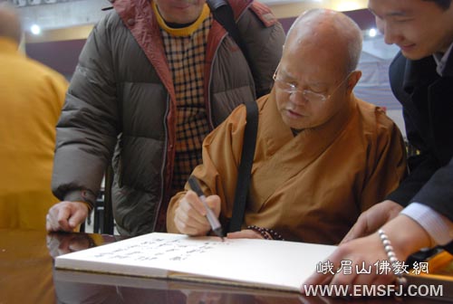 澳门佛教联合会理事长健钊长老在签名簿上题字