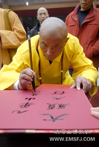 2008年12月13日,峨眉山大佛禅院开光法会暨落成庆典举行在即,怀着无限喜悦前来参加庆典的各级领导、诸山长老、大德居士络绎不绝,法会签到处客似云来,大佛禅院处处洋溢着浓郁的喜庆气氛。