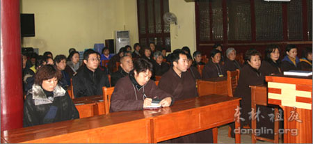 2008年12月20日至21日,湖北武汉伽兰学堂46位学员参访江西九江东林寺,受到了东林寺代住持大安法师的热情接待。
