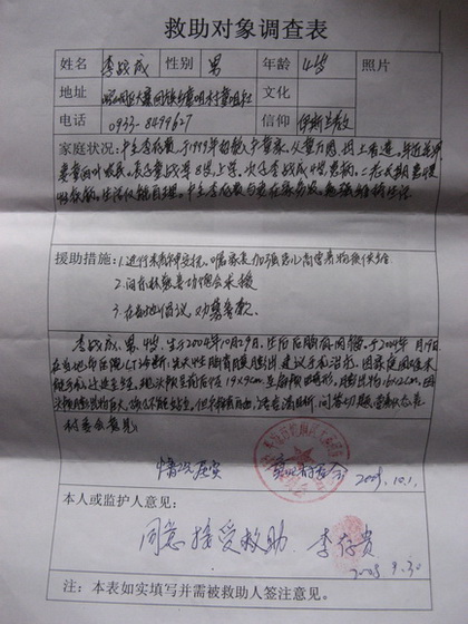 今年,就在李存贵夫妇对着儿子的病无奈叹息时,东林慈善的甘肃志愿者了解到他的情况,立即前往他们家去调查核实,并把情况反应给功德会。功德会工作人员接到这个求助材料后,经过讨论决定对这个患者的情况宣传报道,希望社会爱心人士共同来关注,帮助这个可怜的小孩。