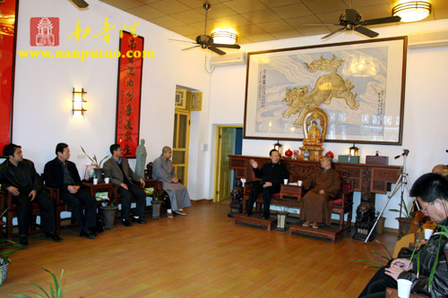 12月4日,辽宁省丹东市副市长孙殿东先生率团赴南普陀寺参访。其中,孙殿东副市长亲任团长,丹东市宗教事务局白国华副局长任副团长,另外团员有:辽宁省东港市副市长于安居、东港市民宗局局长张文良、丹东市宗教局科长文淑清、丹东市一建公司总经理汪洋、东港市地藏寺监院宣觉法师、凤城市双泉寺住持觉一法师。