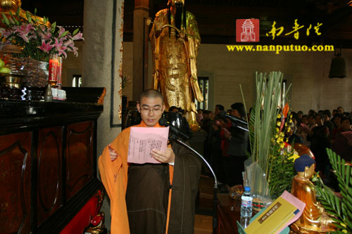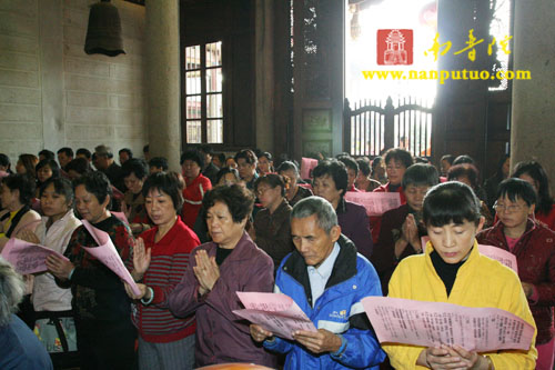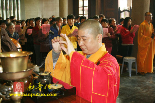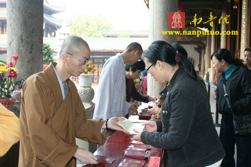 2008年12月5日(农历十一月初八)上午,南普陀寺隆重举行传授皈依法会,方丈则悟大和尚为三百多名信众传授三皈。