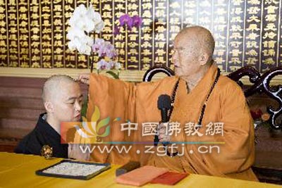 典礼在五圣殿举行,钱峰从圣路易斯来的干妈与西来大学教职员及同学们,一早心情喜悦的涌聚于殿堂内。在般若波罗密多心经、忏悔发愿与皈依三番羯磨后,由发心出家者朗诵出家发愿文,表白为法出家、弘法利生之愿心。在星云大师提起剃刀,以「愿断一切恶事、愿修一切善行、誓度一切众生、果证圆满菩提」剃发后,钱锋即成为临济宗第49代弟子,发愿尽形寿为众生服务。