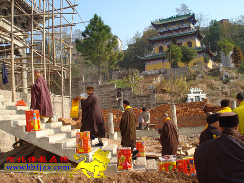 阳新县石壁禅寺藏经楼、方丈楼经过半年多的建设,于2008年12月7日上午喜封金顶!