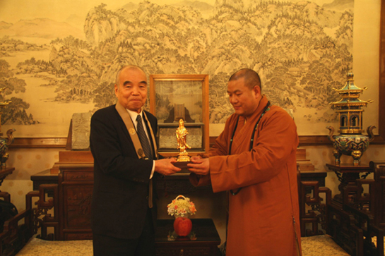 2008年12月3日下午,“中日佛教友好使者”、中国佛学院“名誉教授”、中国佛教文化研究所“名誉研究员”、日本净土宗教育资团(即佛教大学)理事长、日中友好净土宗协会顾问水谷幸正先生,及日本佛教大学准教授、日中友好净土宗协会理事稻冈誓纯教授,在中国佛教协会副秘书长张琳、中国佛教协会国际部日本课李贺敏课长陪同下参访北京灵光寺,受到灵光寺方丈常藏法师的热情接待。