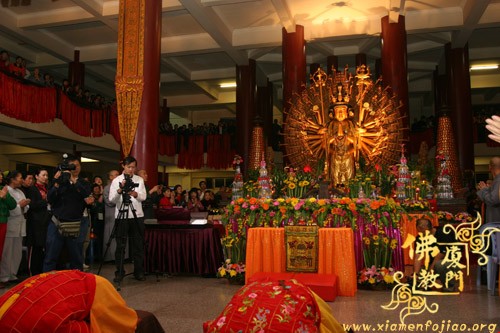 12月2日,台湾生命电视台台长海涛法师一行莅临观音寺。厦门市佛教协会常务副会长、观音寺住持定恒法师率四众弟子两千余人举行了隆重的迎接仪式。