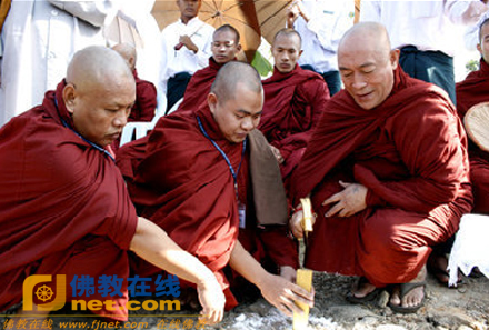 2008年12月14日,中国台湾灵鹫山心道法师一行近四十人前往缅甸仰光滚良光,参加九所小学的联合动土仪式。
