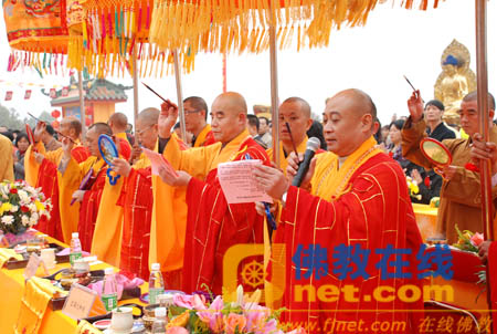 佛教在线广东讯 2008年12月14日,广东省清远市阳山县北山古寺隆重举行了极乐世界落成暨西方三圣佛像开光庆典。北山古寺住持宏满法师,广东汕头市佛教协会会长法性法师,汕头市佛教协会副秘书长弘养法师,广东韶关南华禅寺住持传正法师,香港大屿山宝莲寺退居方丈初慧长老,安徽九华山百岁宫方丈慧庆法师,南岳佛教协会会长、南岳福严寺方丈大岳法师等法师出席了此次庆典,清远市、阳山县相关领导以及各方四众弟子等近万人参加了此次庆典活动。