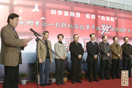 图片书画展开幕式由湖州市政协副主席、市委统战部部长施荣耀主持,市委副书记朱坤明作重要讲话,副市长李建平、政协副主席沈琪芳、统战部副部长蒋小勇、任玉林等参加了开幕式。来自湖州统一战线的各界人士,市宗教团体道教、基督教、天主教领导及部分成员也参加了本次活动。
