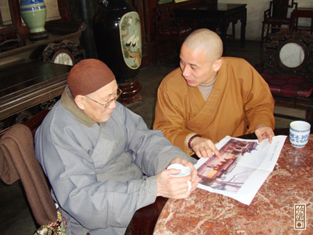 道荣法师向明学长老介绍铁佛寺的修缮计划