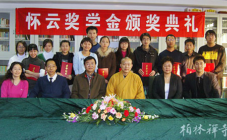 2008年11月30日下午,中央民族大学哲学与宗教学院举行了怀云奖学金颁奖典礼,河北省佛教协会常务副会长、柏林禅寺方丈明海法师一行参加了此次活动,并颁发了“08年度怀云奖学金”。