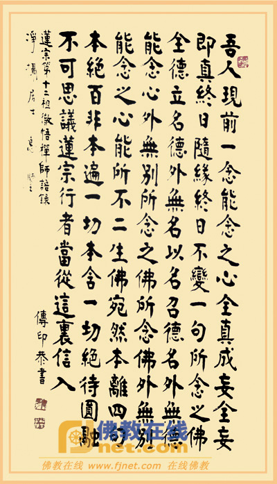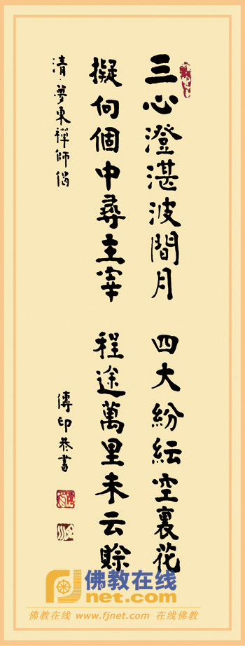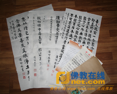佛教在线北京讯 2008年12月9日,本站工作人员就近两年来“机锋辨禅”活动中所涉及到的宗门修行以及念佛修行等问题致信传印长老,请长老慈悲开示。传印长老收悉信件后,分别于12月12日和12月13日两次回信,对所提问题认真作了解答,并就实修方法给予了亲切指导,还特别赠送书法四幅慈悲勉励。