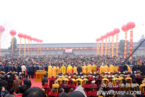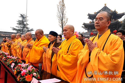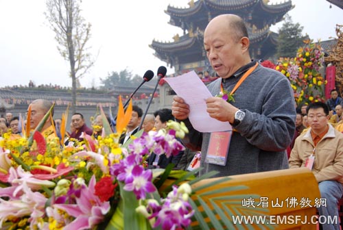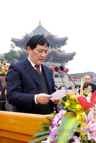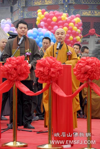 庆典仪式由四川省佛教协会副会长宗性法师、峨眉山佛教协会梁启东居士共同主持,仪式在庄严的《国歌》和《三宝歌》声中拉开序幕。