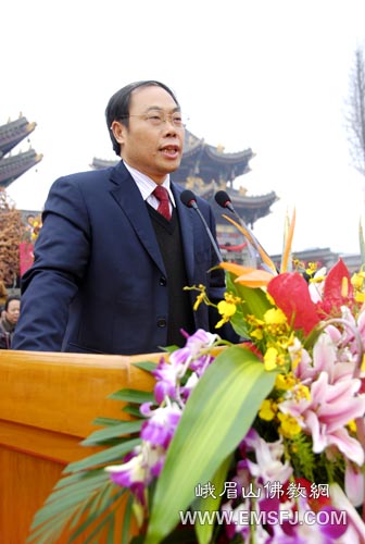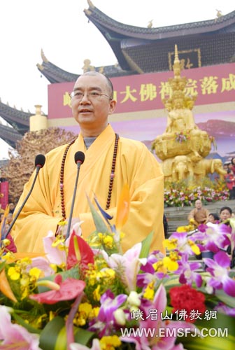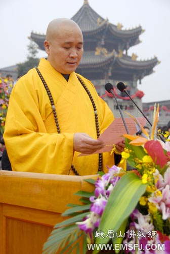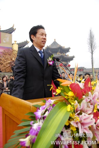 峨眉山佛教协会会长永寿大和尚随即作了热情洋溢的致辞,他代表峨眉山全山僧众对各位来宾的到来表示热烈的欢迎,并对长期以来一直支持大佛禅院恢复重建的各级党委、政府和十方信众表示了最诚挚的谢意。