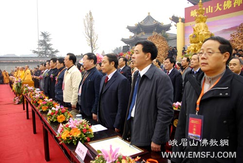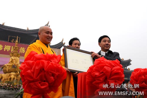 首先,由四川省政协副主席、省委统战部部长陈光志宣布峨眉山大佛禅院落成开放,并由四川省宗教局局长王增建向大佛禅院颁发了《宗教活动场所许可证》。