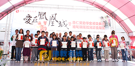 据了解,2008年是“普仁奖学金”连续第三年在台南地区举办,此次获奖的学生的名单是经过师长推荐、初审、家访和复审评选产生。活动现场,台南市长许添财为获奖的三十名国中小学生颁奖。