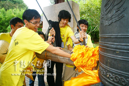 海外华裔青少年冬令营到南山祈福 撞钟迎新年