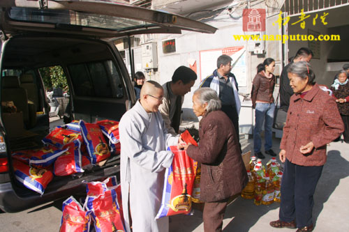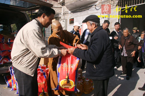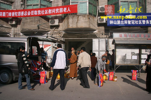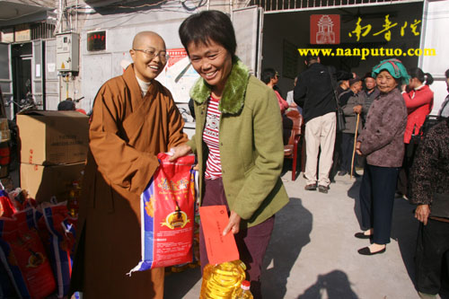 1月6日,受会长圣辉大和尚嘱托,南普陀寺慈善会普陀法师、德鸣法师、静仁法师以及厦门市民宗局一处苏人登处长一行来到海沧区,为62户贫困家庭送去了米、油和红包,并致以新春的问候,祝愿他们过一个温馨、祥和、快乐的春节。