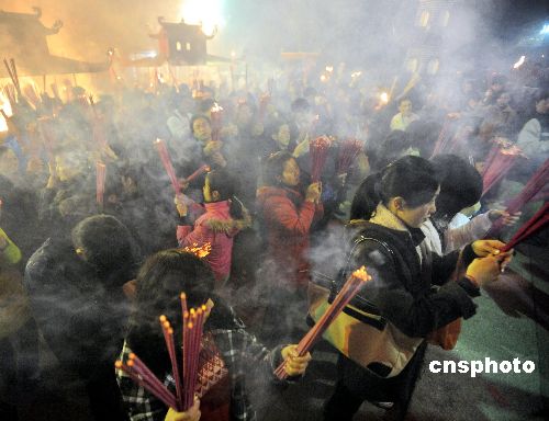 大年初一零点钟声敲响,三万多名佛教信众蜂拥在福州西禅寺大雄宝殿前,敬香礼佛祈求美好愿景。