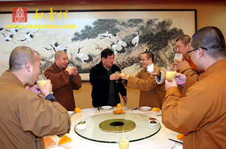2009年1月15日中午11点,厦门市民宗局为了表达对闽院佛学院全体教师的关心和慰问,在南普陀寺普照楼宴请闽南佛学院全体法师,并为他们送上了新春的祝福。