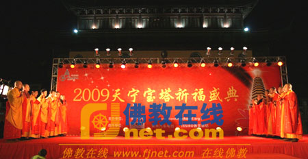 2008年12月31日晚,江苏省常州市天宁禅寺在天宁宝塔广场举行了盛大的祈福法会。希望大众能受诸佛菩萨的慈悲加持,好运2009。