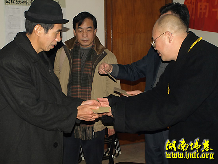 2009年1月7日中午, 中国佛教协会副会长、湖南省佛教协会会长圣辉法师,湖南省佛慈基金会袁平秘书长等一行到湖南华光外贸实业公司,看望慰问了特困职工,并送上20000元慰问金帮助他们安度春节。