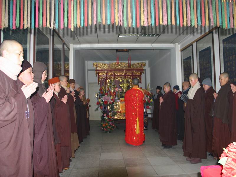 正月初一,寺院还举行了弥勒菩萨祝圣法会和礼拜三千佛名忏大法会.全天两万余名信众市民随喜参加了道场活动.市宗教局刘民选局长,马竟副局长,敖立功副局长及河东区领导亲自来到寺院看望荐福观音寺七十余位法师并向大家祝贺节日!