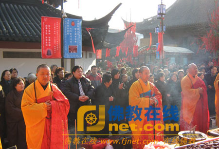 2009年1月3日 上海市松江区西林禅寺新年隆重举行三圣殿、普贤殿、念佛堂、斋堂“上梁封顶”仪式暨“年终授记佛前大回向”法会。西林禅寺方丈悟端法师、能慧法师和能慈法师主持法会。西林禅寺全体僧众和上海市的佛教信众共同参加了此次法会。